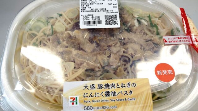 お弁当、総菜セブンイレブン 大盛豚焼肉とねぎのにんにく醤油パスタ