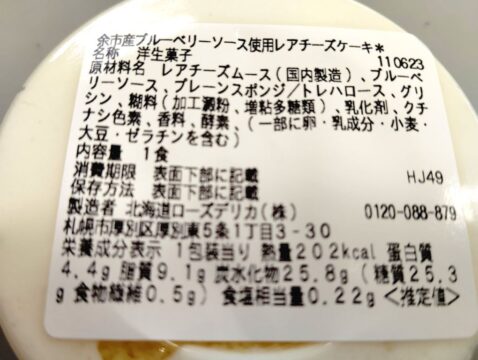 余市産ブルーベリーソース使用レアチーズケーキ