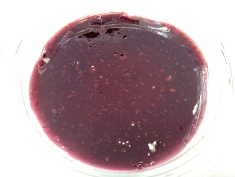 ブルーベリーの良い香りがしてくる。甘酸っぱい香りも美味しそうだ。上からの見た目はレアチーズケーキには見えないけど。