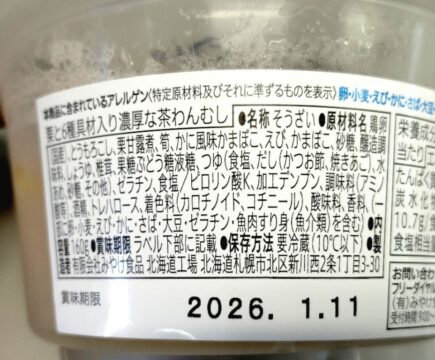 寒くなってきたから茶わんむしが売り始めたな。電子レンジで温めれるのはいいね。カニっぽいのみえるし。思わず購入。