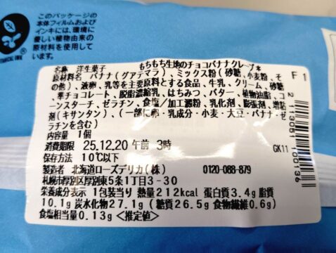 パッケージ変わったチョコバナナクレープ。もちもち生地になったみたいなんだな。値段も新しくなってるけど。