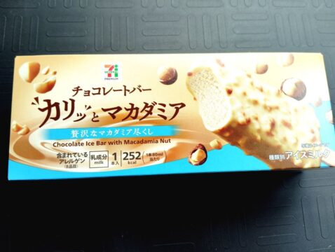 カリカリザクザクな食感のチョコレートアイスバー。マカダミアナッツがたっぷり入っててめちゃくちゃ美味しい。