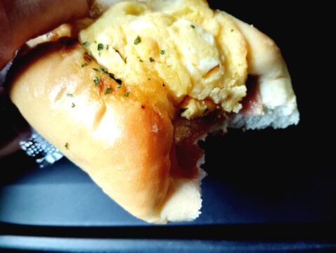 ふんわりしたパンに、たまごサラダのまろやかな味わいと、ハムの塩気で引き立ってイメージ通りの美味しさ。