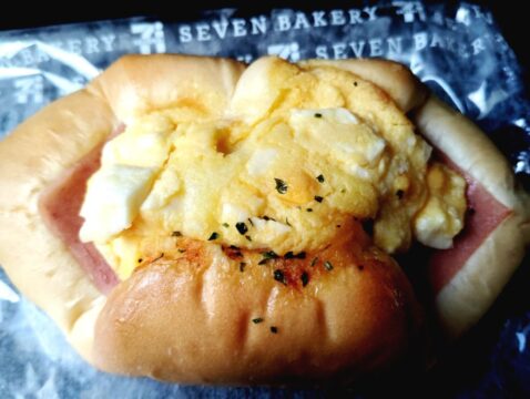 ふんわりしたパンにハムとたまごが乗ってる惣菜パン。たまごの優しい味わいにハムの塩気がマッチして美味しい。
