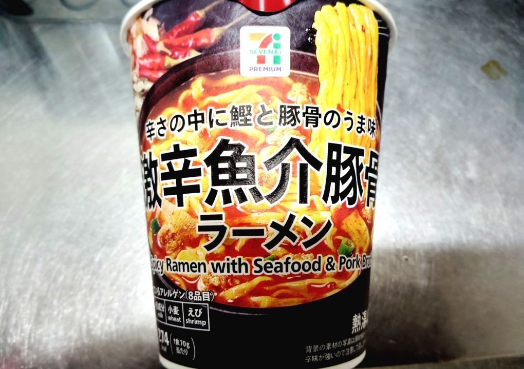 激辛って書いてあるセブンイレブンのカップラーメンは珍しいな。魚介豚骨で激辛とはどれぐらい辛いのか。