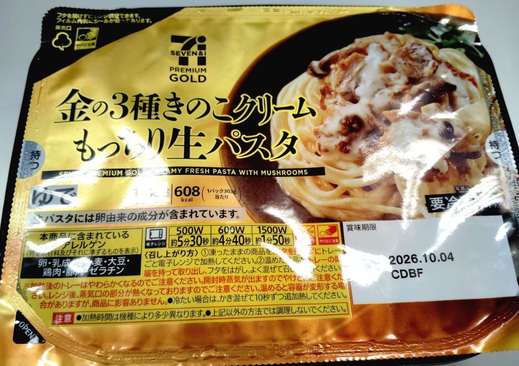 セブンイレブンの金の3種きのこクリームもっちり生パスタを食べてみました。