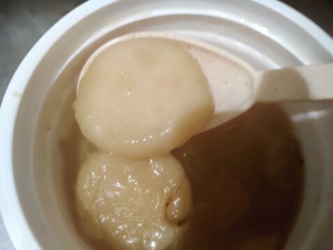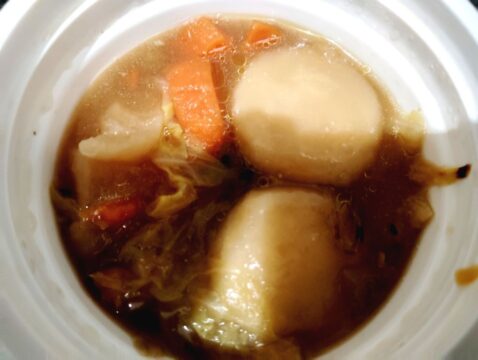 メインのすいとんが2個なのがちょっと少ないかなぁ。もう少し入ってたら嬉しかった。ちゃんとすいとんなのでオススメ出来ます。