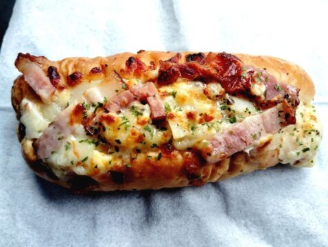 ふんわり柔らかいパン。燻製されてるチーズの香りがしてくる。ベーコンのジューシーさと、チーズとホワイトソースのまろやかさがマッチして美味しい。