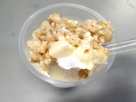 甘くなくて食べやすさありだね。思ってたよりは、塩ちんすこうとレアチーズは合うね。チーズケーキっぽくはないな。