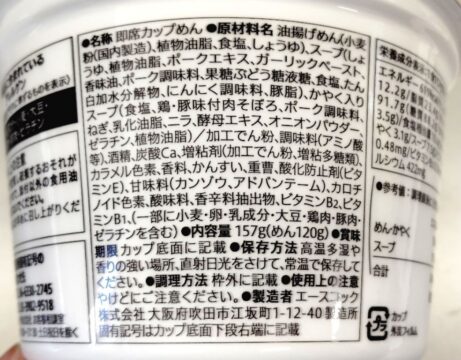 粉末スープ入れて、お湯入れて5分。液体スープ入れたら完成。にんにくの香りががっつりきて醤油の香りもいいね。めちゃくちゃ美味そう。