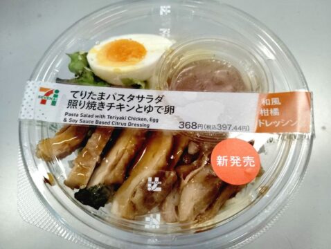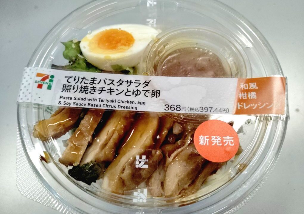 セブンイレブンのてりたまパスタサラダ照り焼きチキンとゆで卵を食べてみました。