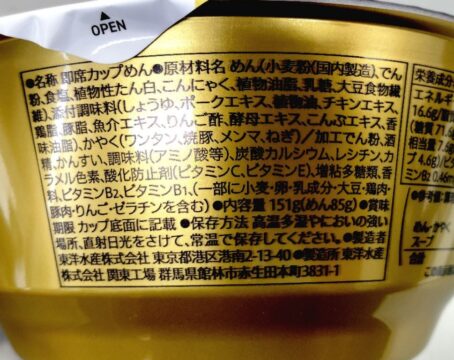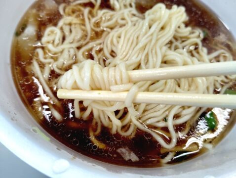 小麦の風味豊かな麺で、カップ麺の麺とは思えない美味しさ。わんたんはツルッとしてる。スープが染みてて美味しいけど、中身がないように感じたね。ちょっと残念。
