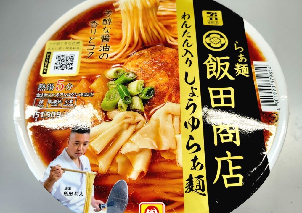 セブンイレブンの飯田商店監修わんたん入りしょうゆらぁめんを食べてみました。