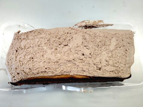 ふんわりしたスポンジとシャリっとしたチョコの不思議な食感がしてくる。かなり濃厚なチョコ味。